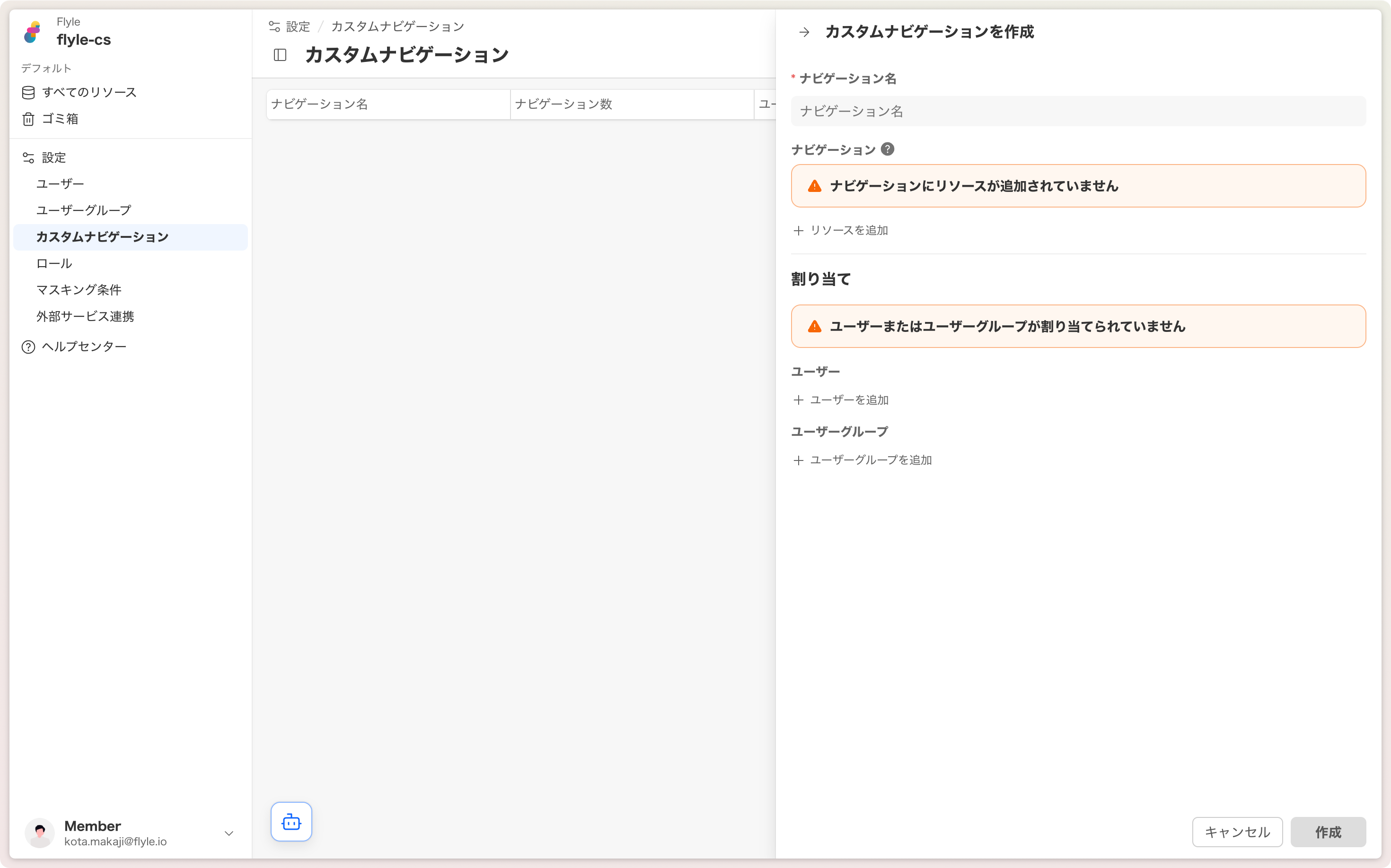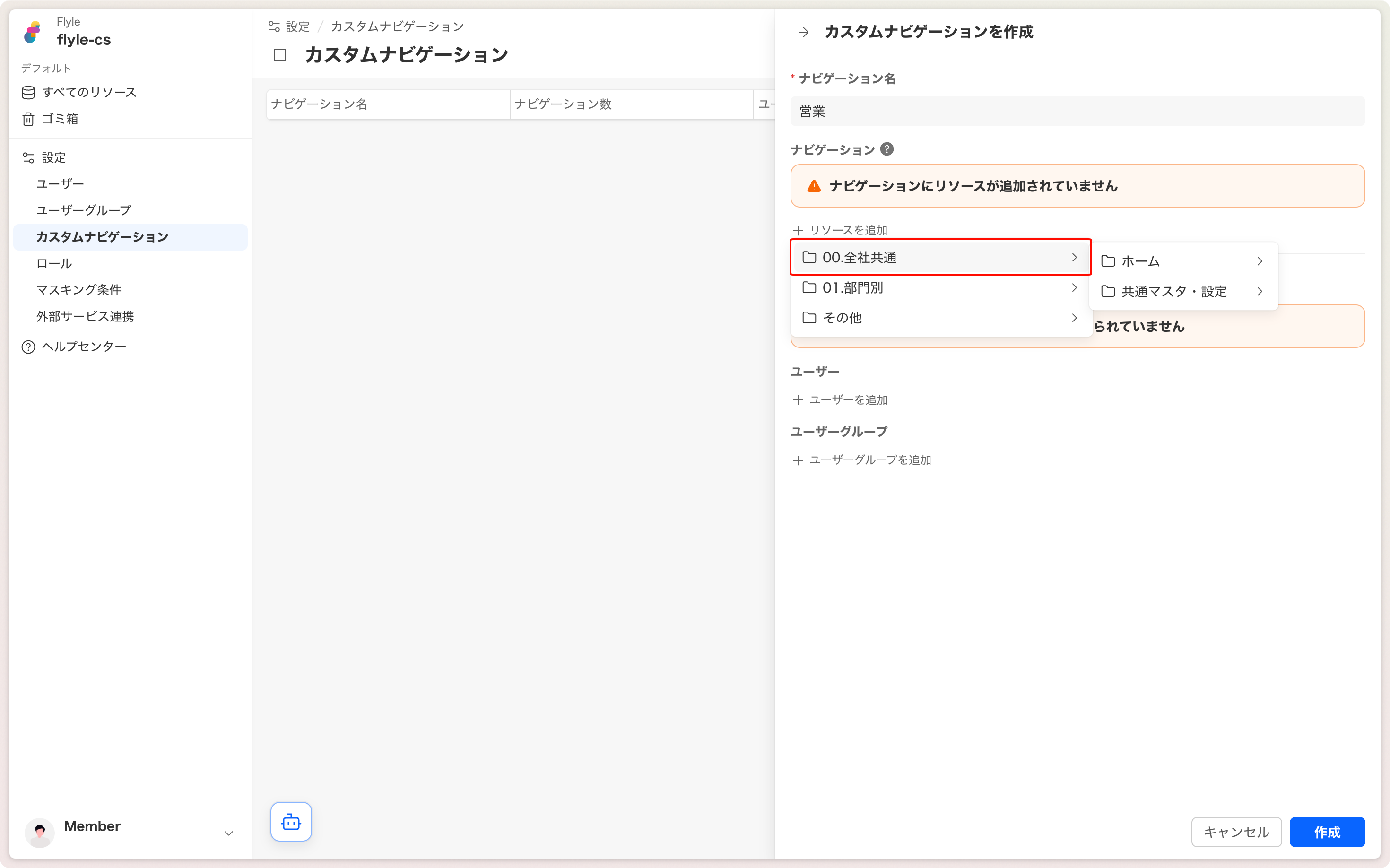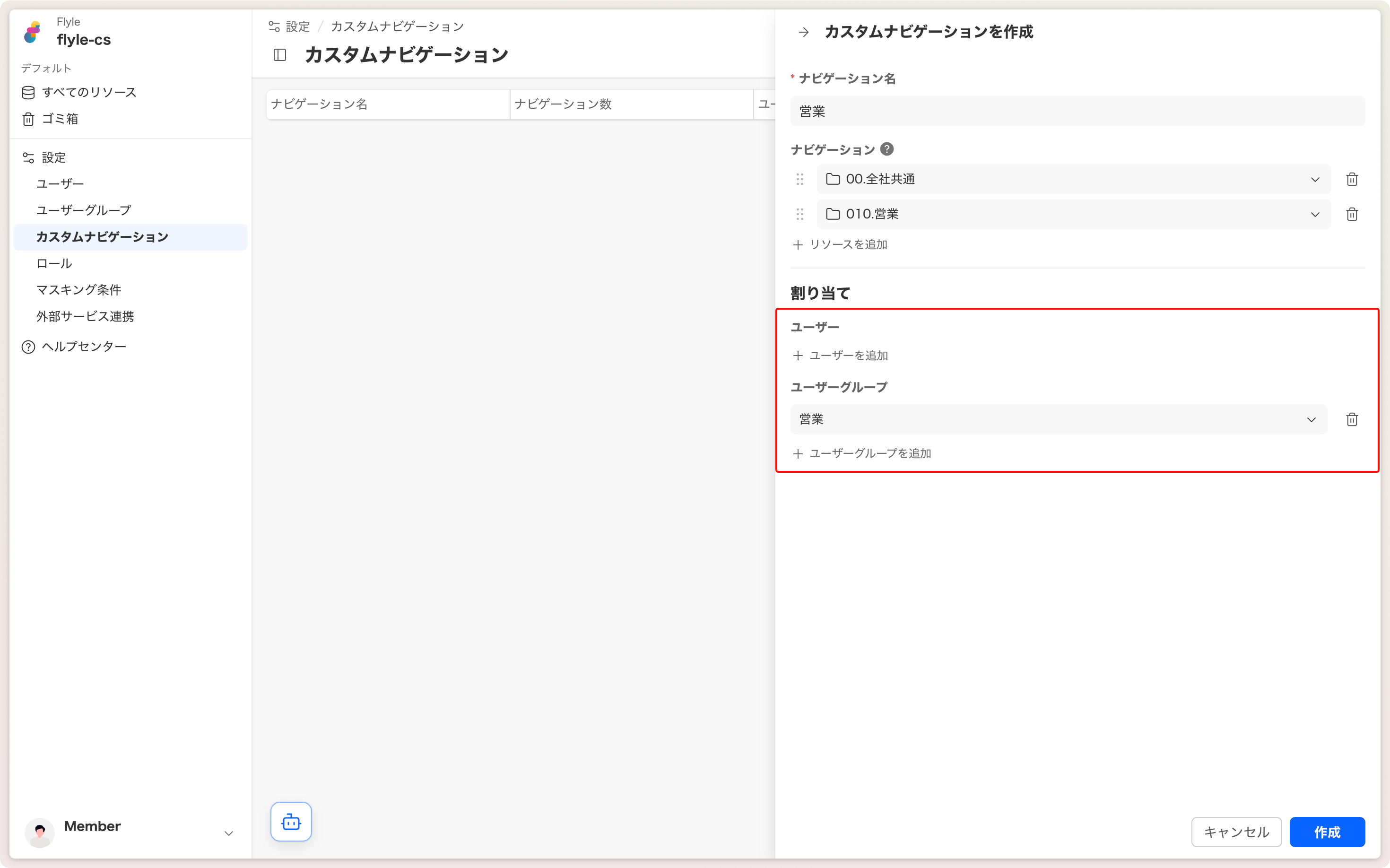 カスタムナビゲーションを適用させたいメンバーを割り当て作成をクリック