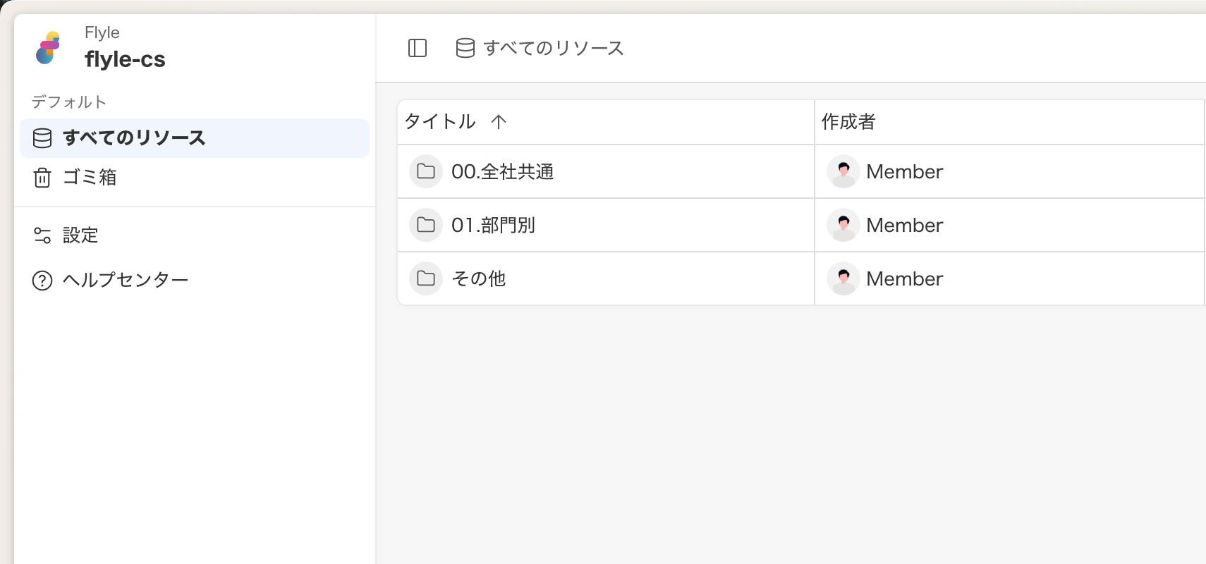 以下のようなフォルダ構成を例として、部門単位のカスタムナビゲーションの設定を行います。(営業チーム / CSチーム)
