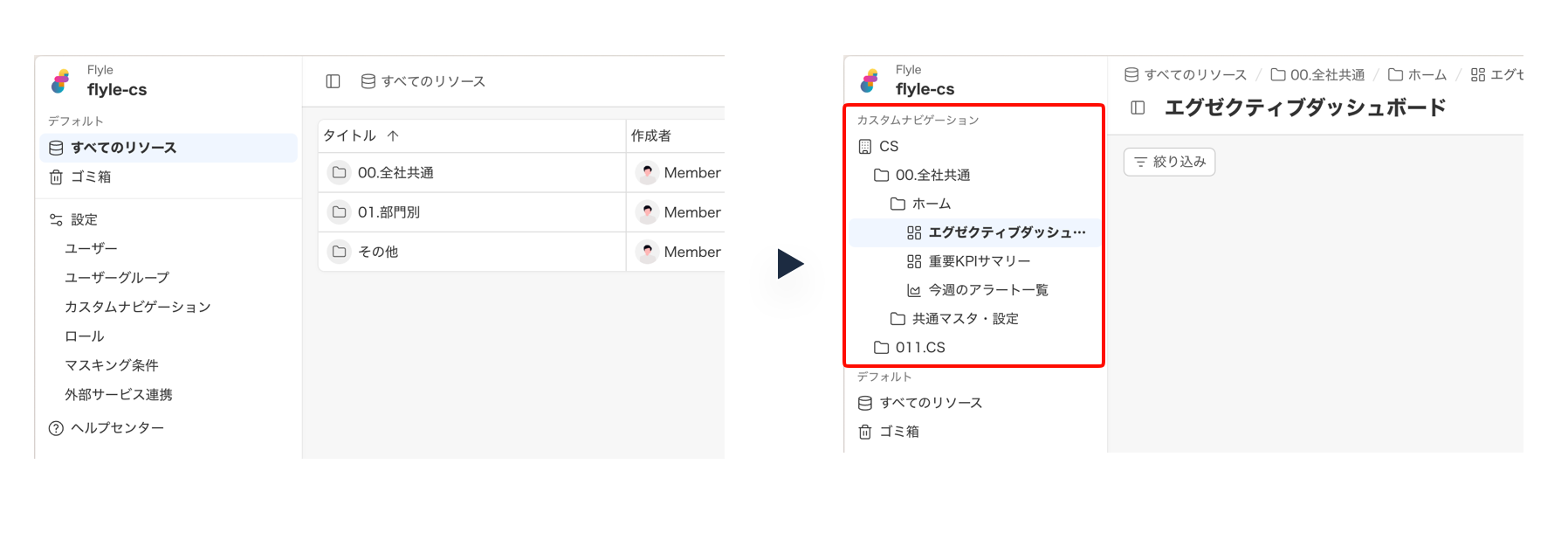カスタムナビゲーションは、業務内容や組織体制に合わせて、画面内のメニュー構成を柔軟に設計できる機能です。利用者が必要な情報へ最短でアクセスできる導線を作ることで、日々の操作効率と運用のわかりやすさを向上します。