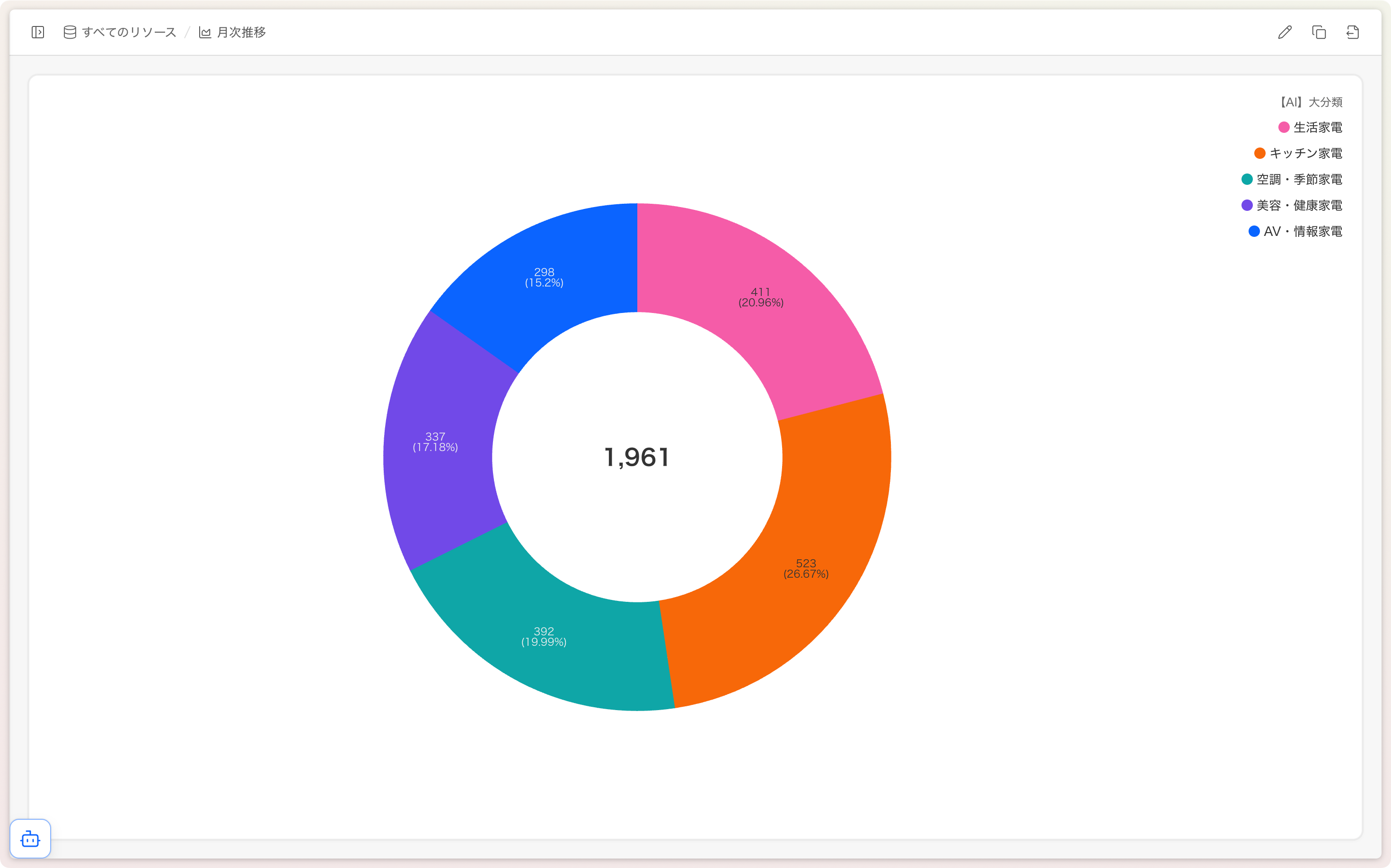 例)当月チャネル比率、問い合わせ種別比率