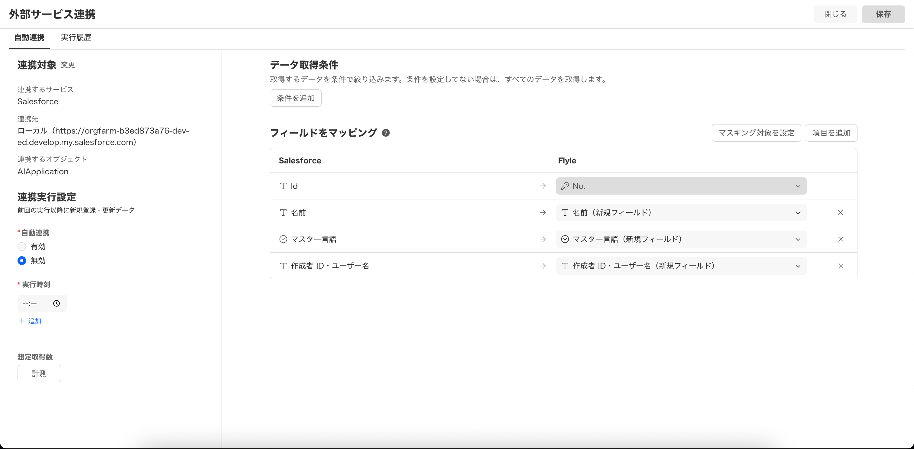 SalesforceフィールドとFlyleフィールドを紐付けます。